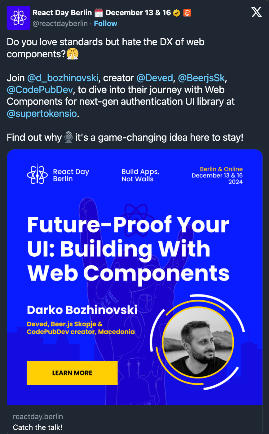 Darko will present his talk Future-Proof Your UI: Building With Web Components